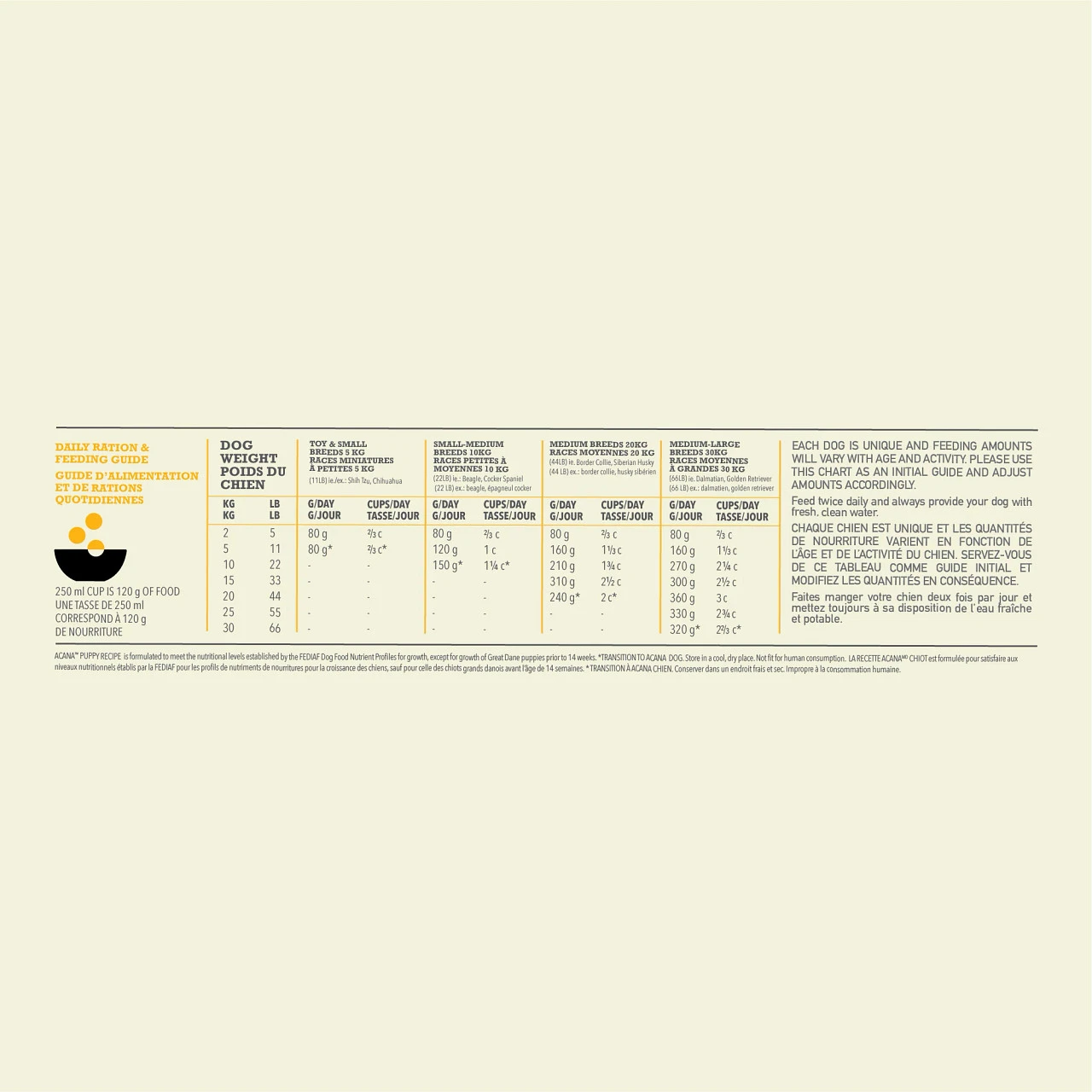Met hoogwaardige dierlijke ingrediënten uitgebalanceerd met fruit, groenten en plantaardige ingrediënten die dagelijks worden geleverd, is elke maaltijd van ACANA Puppy Recipe alsof het van de boerenmarkt komt. 1e ingrediënt is verse Canadese kip. Onze verse ingrediënten gebruiken koeling als enige conserveringsmethode en onze rauwe ingrediënten worden ingevroren op hun maximale versheid.